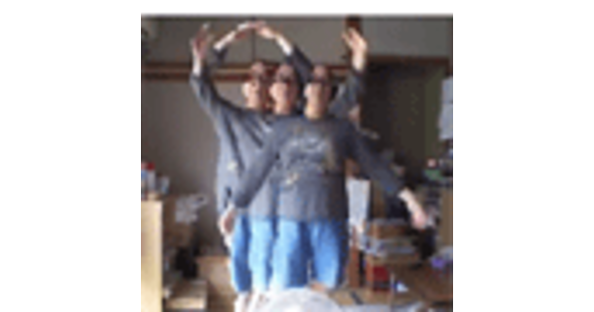 実際の動きは図1と動画を参照してください。このサンプルでは最初に表示されている画像が1番となり、その前に次の画像、その前にまた次の画像・・・といった順に表示されます。例えば、腕を上げると一番背後の画像が一番目に腕を上げ、次に一番先頭の画像、次の画像・・・という順番になります。