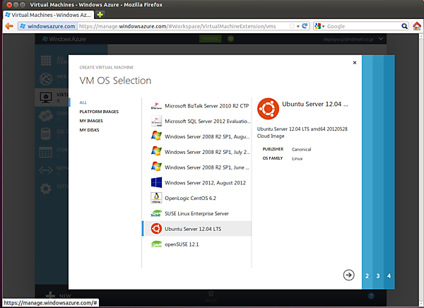 VM OS Selectionから[Ubuntu Server 12.04 LTS]を選択して、右下の矢印ボタンをクリックしてください(図6)。
