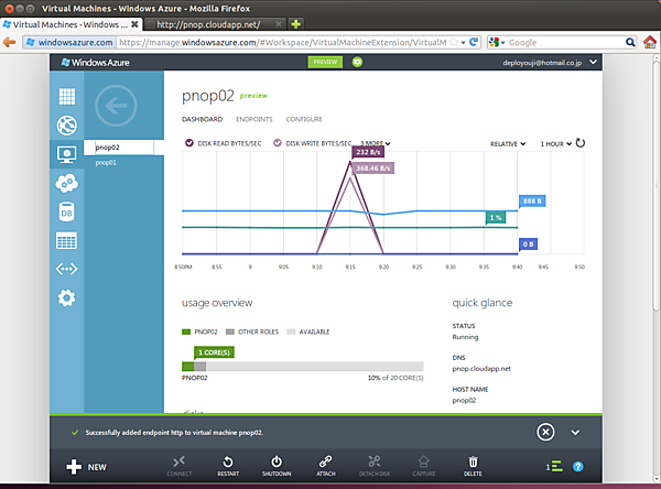 次にdnsname.cloudapp.netのエンドポイントにPORT 80を追加します。