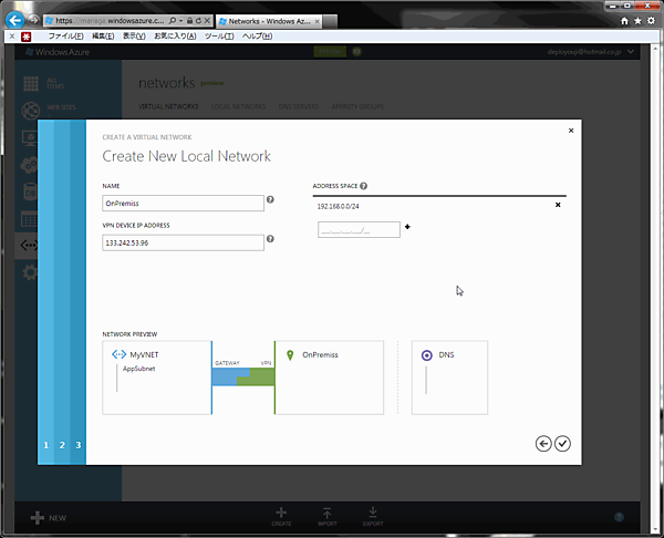 | ADDRESS SPACE | オンプレミス側のローカルサブネット(192.168.0.0/24) |