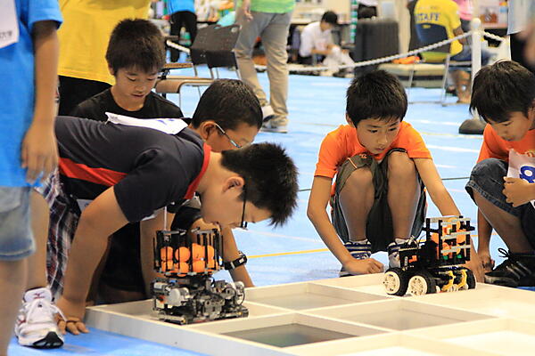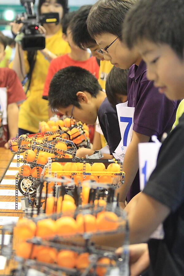 いよいよ競技開始!小中高生はそれぞれの課題に沿った競技を行います。各チームは持ち時間2分の競技を合計2回行い、スピードや正確さを競います。