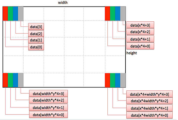 ひとつのピクセルを赤、緑、青、不透明度という4つの要素で表現しているわけです。これらの値を操作することで、色味や透明度を変化させた上で、画像を貼り付けるということもできるでしょう。