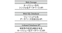 Web Storage(以降、ストレージ)とは、ブラウザ標準で用意されたデータストアの一種です。データを特定するための名前(キー)と値との組み合わせでデータを管理することから、Key-Value型データストアと呼ばれることもあります。あまりに複雑なデータ管理には不向きですが、ちょっとしたデータを管理するのに有効です(*)。