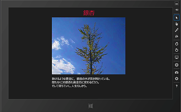 この状態で実行してみると、どうでしょう。最初に一瞬ですがSplashScreen.pngが表示されたと思います。では、Windows 8のスタート画面を見てみましょう。図14のようにLogo.pngが表示されていると思います。