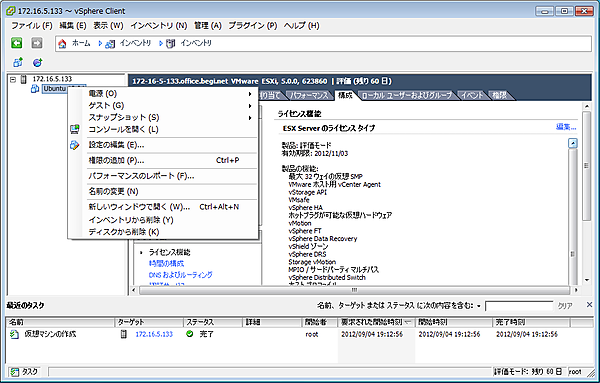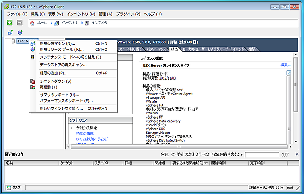 ESXiの環境が整ったら、仮想マシンを作成してみましょう。仮想マシンを作成するには、vSphere Clientで操作します。