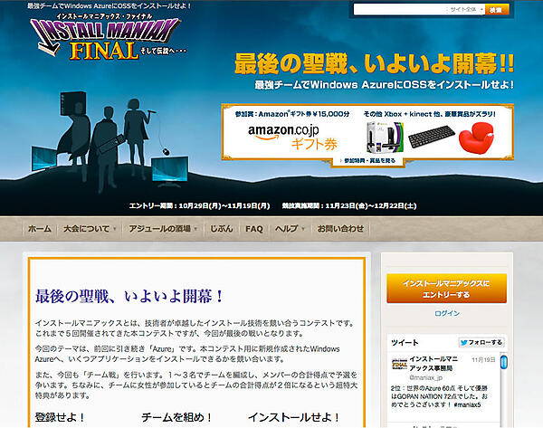 舞台となるのは、マイクロソフト社のクラウドプラットフォーム「Windows Azure」、ここにどれだけ多くのOSS(オープンソース・ソフトウェア)をインストールできるかを、参加者全員が競い合います。
