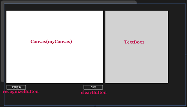 フリーハンドで文字を書いていくにはCanvasコントロール内に書いていきます。レイアウトは図2のようになります。