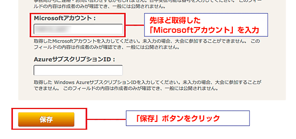 ここに、先ほど控えておいたMicrosoftアカウントを入力して保存したら、このクエストは完了です。