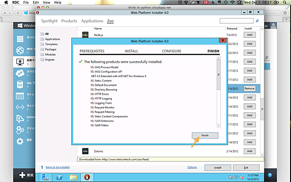 このように、全てGUIからPythonの環境を整えることができます。Helicon Zooには設定のテンプレートが用意されており、DjangoなどのメジャーなWebフレームワークを使ったアプリケーションも簡単に、Windows Server上で走らせることが出来ます。是非、皆さんもPython on Azureにトライしてみてください。