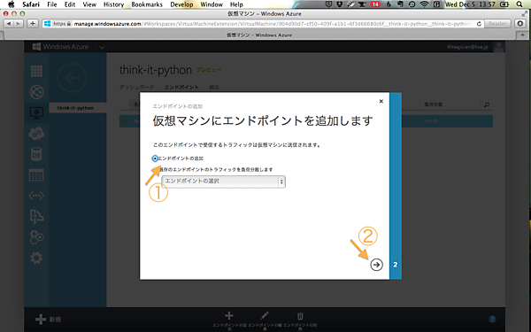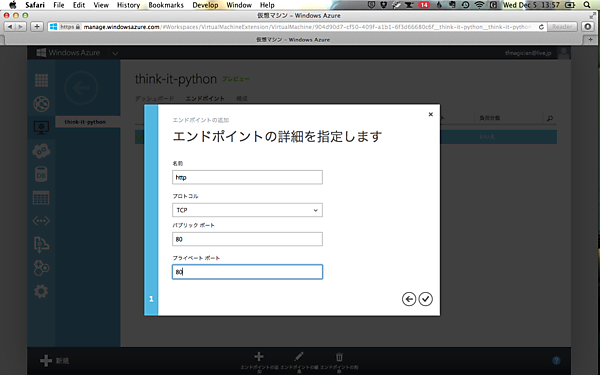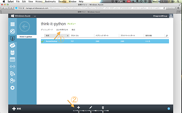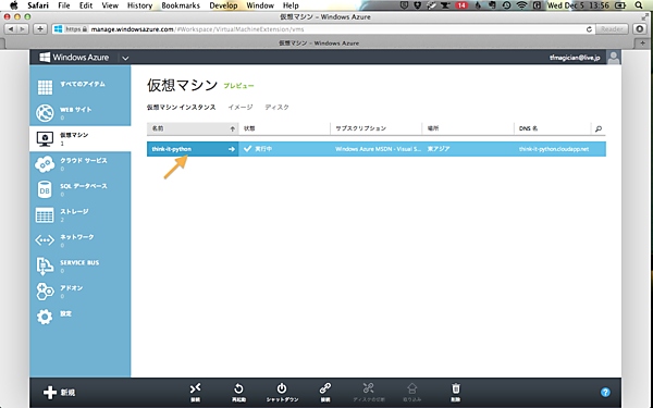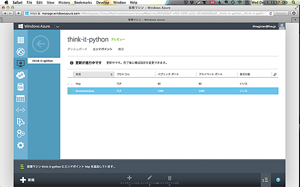 これだけではサーバの外からページを参照できません。AzureのEndpointを設定し、外からページを表示できるようにします。リモートデスクトップから、Azureのポータルを開いたブラウザに移ります。対象の仮想マシンをクリックします。
