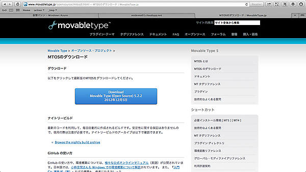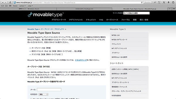 最初に、ローカルPCでhttp://www.movabletype.jp/opensource/にアクセスします。