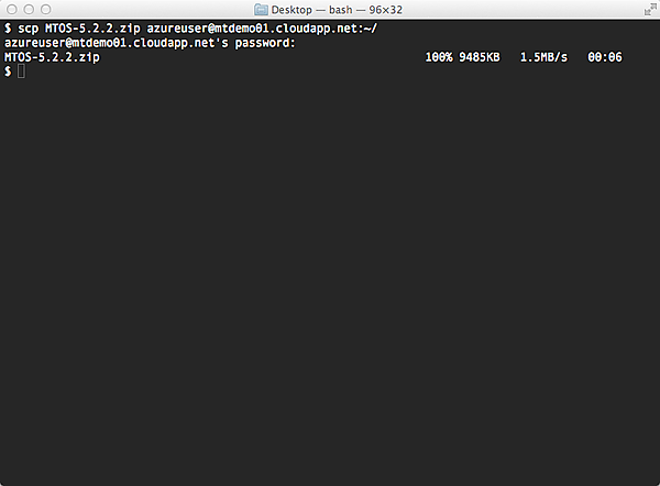 $ scp MTOS-5.2.2.zip azureuser@mtdemo01.cloudapp.net:~/