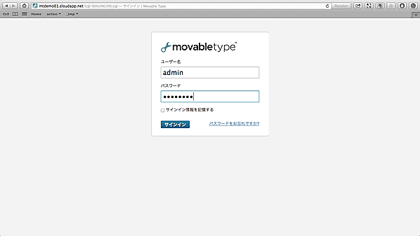 サインイン画面が表示されます。「アカウントの作成」画面で指定したユーザー名とパスワードを入力し、「サインイン」ボタンをクリックしてください。