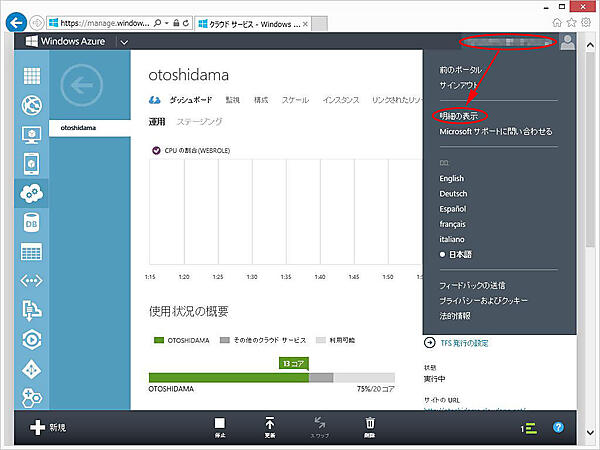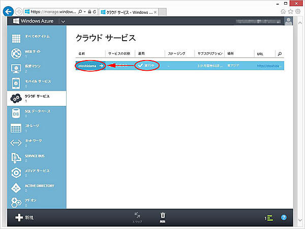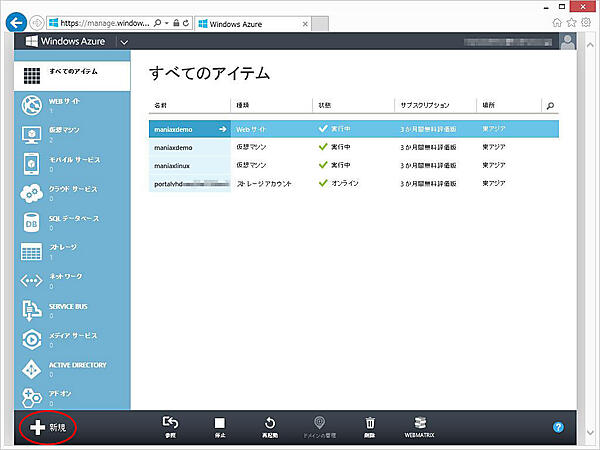 3. Windows Azure管理ポータルにアクセスしてください。