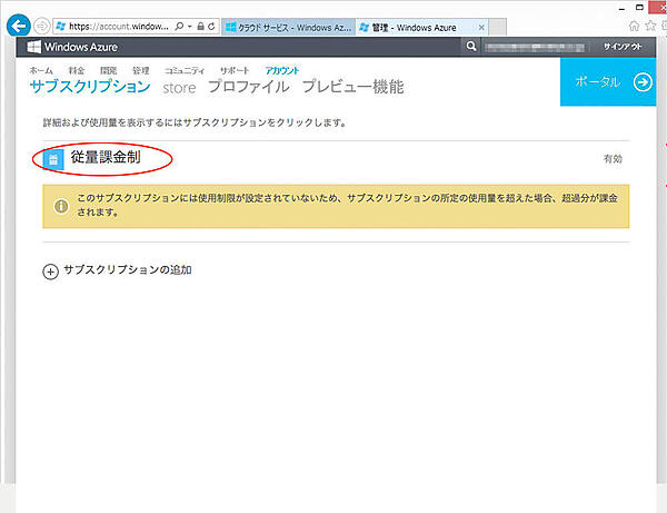 16. サブスクリプション名(「従量課金制」となっているはずです。)をクリックします。