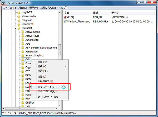 HKEY_CURRENT_USER¥Software¥Microsoft¥Calc¥Window_Placement