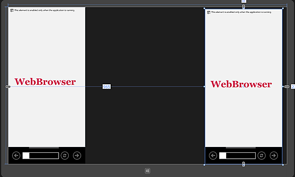 ツールボックスからデザイン画面上にWebBrowserrコントロールを2個配置します。Sourceプロパティに表示させたいページのURLを指定してください。レイアウトは図3のようになります。書き出されるXAMLコードはリスト1です。