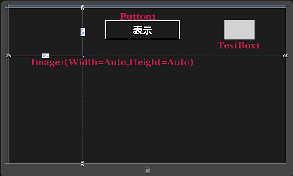 ツールボックスからデザイン画面上に画像を表示するImage、「表示」用のButton、ファイルの個数カウントを表示するTextBoxコントロールを1個ずつ配置します。