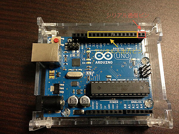 続いて、LEDのHello Worldプログラムについて解説します。まず、初めに理解することは、Arduinoにおける入出力には大きく分けて2種類あるということです。一つは電圧を読んだり、出力したりするデジタル入出力ピン、もう一つはシリアル通信の入出力ピンです。