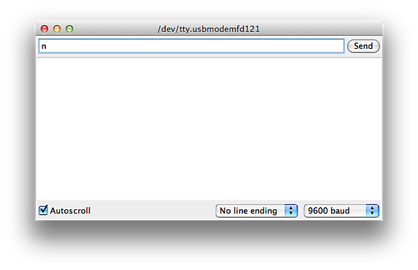 Arduino IDE付属のコンソールから、nを送ってLEDが点灯、fを送ってLEDが消灯すれば期待通りに動いています。特に難しいプログラムではないので、解説は省略します。ポイントは8行目のSerial.read()です。LEDを光らせる部分は、前回の記事と同じです。コメントを参考にプログラムを理解して、色々と変更してみてください。