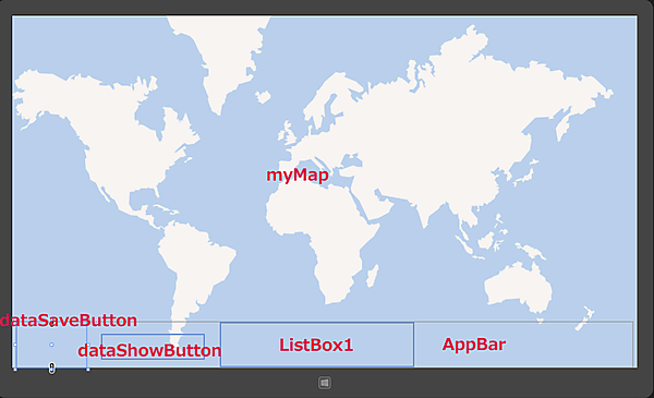 図13:各コントロールを配置した。拡大縮小ボタンと、地図の表示モード選択ボックスは、実行時に自動的に表示されます(クリックで拡大)