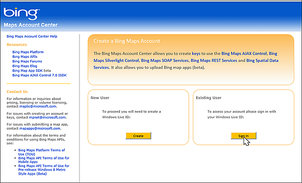 図14:Bing Maps Account Center でSign Inする(クリックで拡大)