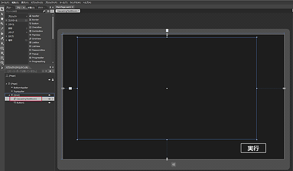 <Button x:Name="Button1" Content="実行" HorizontalAlignment="Left" Height="63" Margin="1096,668,0,0" VerticalAlignment="Top" Width="160" FontFamily="Meiryo UI" FontSize="36"/>■(4)