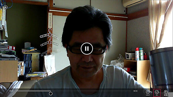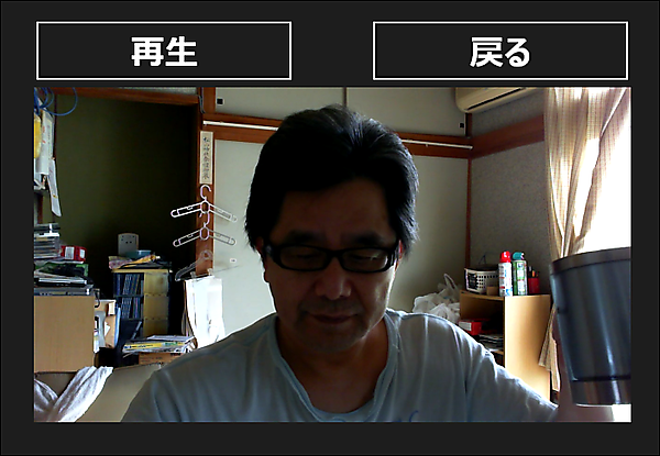 動画を記録する画面の左隅上にある←アイコンをクリックすると(図1)、画面は[再生]、[戻る]ボタンの表示された画面に切り替わります。