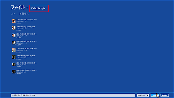 - 撮影した動画で問題なければ、画面下の[OK]のアイコンをクリックします。すると動画を保存する画面が表示されます。保存用のVideoSampleというフォルダが作成されていますので、その中に保存します。ファイル名は自動的に付いていますので、そのまま[保存]をクリックします(図3)。
