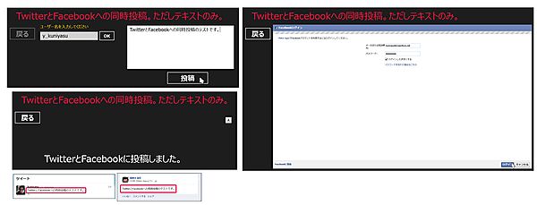 TwitterとFacebookの両方に入力した内容が投稿されます(図1)。