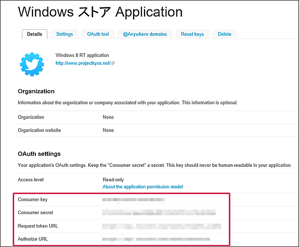 LINQ To Twitter Betaに必要な情報を取得
