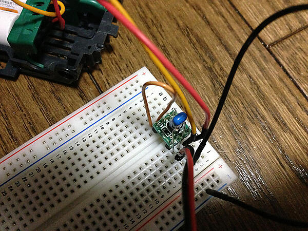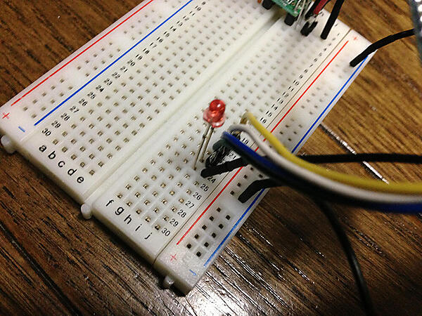 Arduino Pro Miniのシリアルポートをなぜ、このような形で半田付けしたかは、来週の記事で説明します。今回はこの記事に従って、半田付けしておいてください。USBシリアルアダプタの接続が完了したら、続いて以下のパーツを接続します。