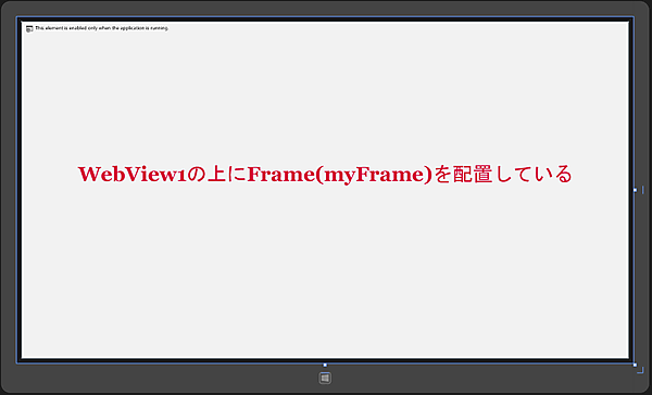 FacebookLoginPage.xamlのデザイン画面上に、ツールボックスからデザイン画面上に、WebViewとFrameコントロールを1個ずつ配置します。Frameコントロールのほうが前面に来るように配置します。