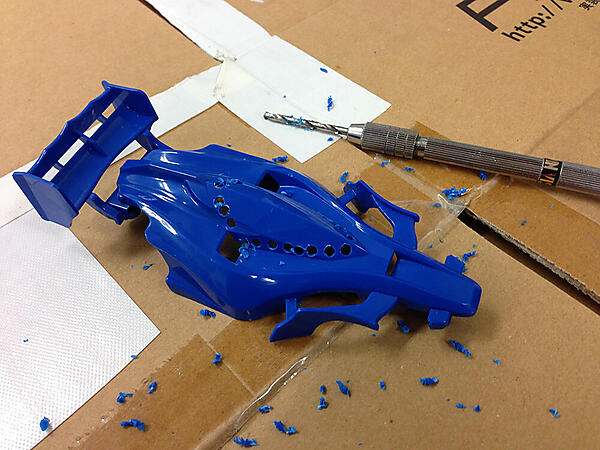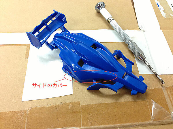 先ほどと同様にピンバイスを使って、サイドのカバーに沿って穴を開けていきます。