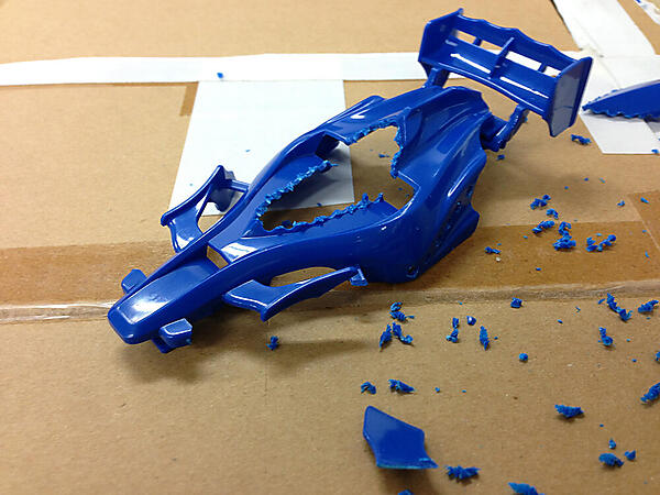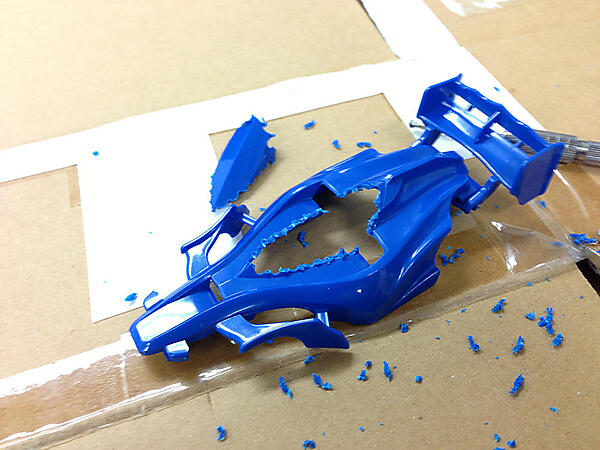フロントの窓、サイドのカバーの順に肉抜きしていきます。
