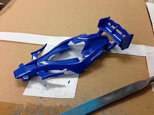 このままでは格好悪いので、ヤスリで仕上げます。ピンバイスの穴で凸凹した部分をヤスリで削ります。
