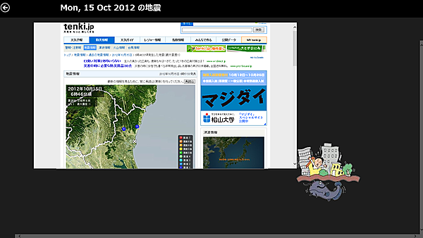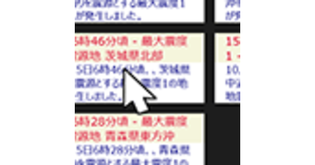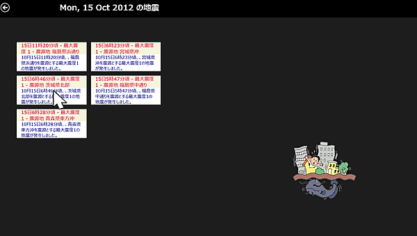 今回は当日発生した地震の情報をタイルに表示して(図1)、タイルをタップするとWebブラウザが起動して詳細情報を表示する(図2)プログラムを紹介していきます。