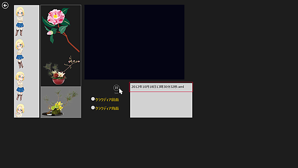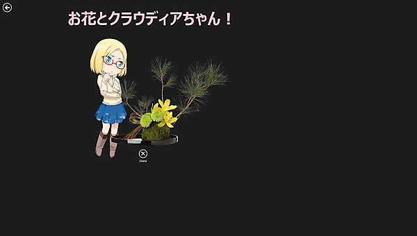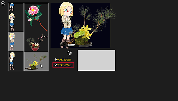新しいファイルほど下に追加されますので、スクロールしてください。作成されたファイルを選択すると、クラウディアと花の情報が読み込まれて、たった今作成した状態でクラウディアと画像が表示されます(図5)。