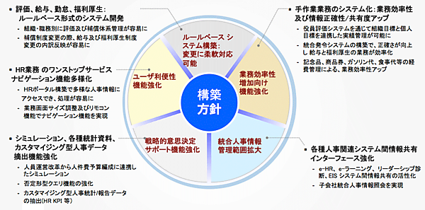 人事評価、給与管理、勤怠管理、福利厚生を中心に現場のルールをもとに開発された「e-HRMシステム」は、手作業の業務をシステム化し、人事関連のシステム間インターフェースを強化しました。また、シミュレーション、統計資料及び人事データ抽出機能を強化し、HR業務のワンストップサービス及びナビゲーション機能も強化したことで、画面操作・処理速度は、2倍以上速くなり業務効率が大きく向上しました。その他の採用効果については以下の図をご覧ください。