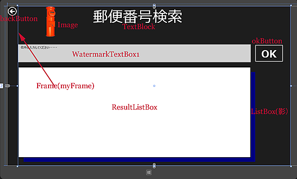 <TextBlockHorizontalAlignment="Left" Height="99" TextWrapping="Wrap" Text="郵便番号検索" VerticalAlignment="Top" Width="449" FontFamily="Meiryo UI" FontSize="72"/>■(6)