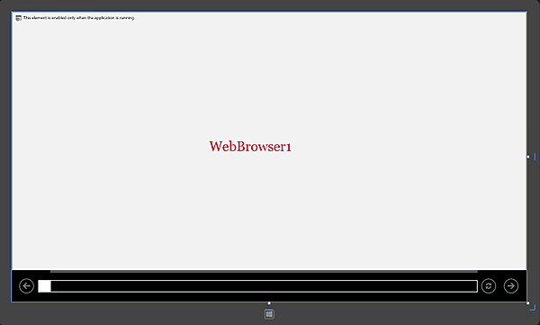 ツールボックスからWebBrowserPage.xamlのデザイン画面上にWinRTXAML Toolkitのコントロールである、WebBrowserコントロールを1個配置します。名前にはWebBrowser1としておきます。