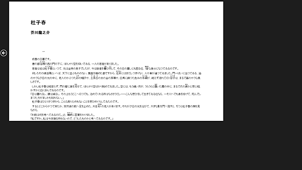 - すると、WebView内に芥川龍之介の「杜子春」の内容が表示されます(図3)。ここでは、検索欄で「著者名」や「作品名」を検索しましたが、表示されている「著者名」や「作品名」を選択して表示することも可能です。