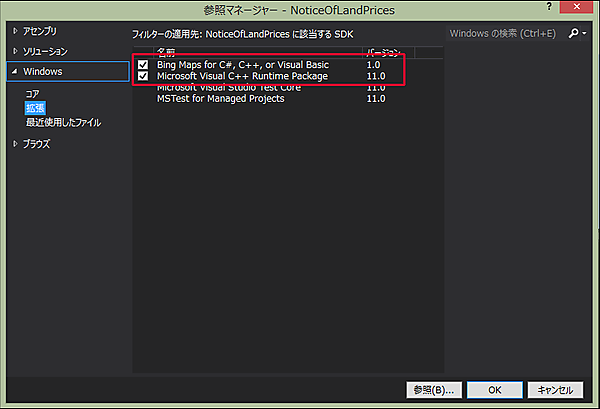 Bing MapsをWindows ストアから使用するには、あらかじめ「Bing Maps SDK for Windows store apps」をインストールしておく必要があります。