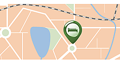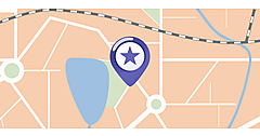病院の位置には紺色の●が表示され、●をタップすると、宿の「病院名」、「住所」の情報が表示されます(図2)。