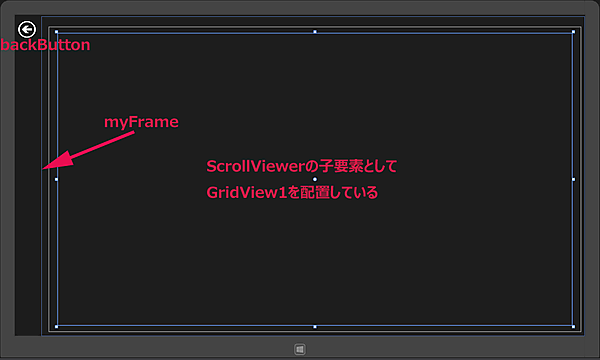 ツールボックスからデザイン画面上にScrollViewerコントロールを1個、その子要素としてGridViewコントロールを1個配置します。