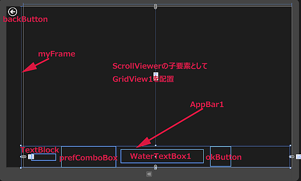 (1)WinRTXAMLToolkitのWatermatkTextBoxを使用しているため(後述)、要素内にControlsという名前空間が定義されています。