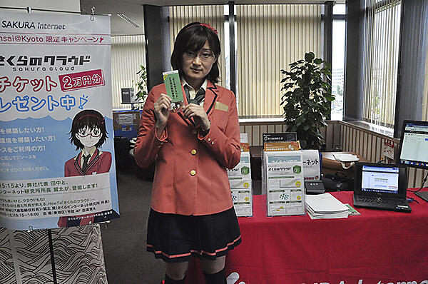 さくらインターネットのブースでは、「さくらのクラウド」公式キャラクターの桜庭愛さんが二次元を飛び出して登場。「さくらのクラウド」2万円分無料チケットを来場者やブースに配布していました。