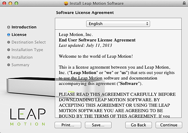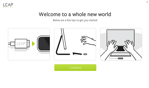 今さらな感想ですが、右側に表示されるLeap Motionのロゴはカッコイイですね。ウェブページや、Leap Motion Controller本体、箱を含めて、綺麗で洗練されているイメージが好印象です。