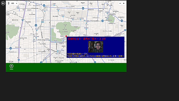 Bing Maps上に、写真を写した場所を表示し、ピンをタップするとおおよその住所と画像、コメントの表示されるページです。