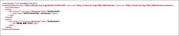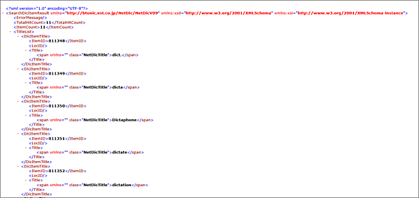 デ辞蔵のREST APIで返されるXMLは、最初のAPIでルート要素が